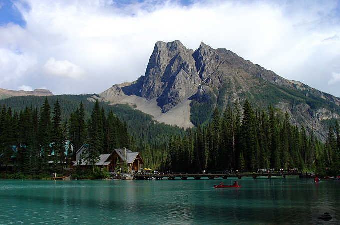 Die Postkartenlandschaft um Lake Louise darf man sich nicht entgehen lassen. Vorgeschlagen ist der 3,5 Kilometer Pfad mit 400 Metern Höhengewinn zum historischen Tea House an einen alpinen See. Hier lockt ein Netzwerk von leichten bis anspruchsvollen Wegen noch ein Stück weiter und höher zu wandern. Zum Beispiel die 15 Kilometer Schleife in die Ebene der sechs Gletscher, oder ein 2,5 Kilometer harter Anstieg mit 515 Meter Höhengewinn auf einen Gipfel mit toller Aussicht auf benachbarte Bergspitzen und ferne Landschaften. Zeltplatz (Duschen) unter Kiefern im Yoho Nationalpark auf der Westseite der Rockies. Die Natürliche Brücke, Emerald Lake, Takakkaw Falls gehören zu den Sehenswürdigkeiten von Yoho Park.