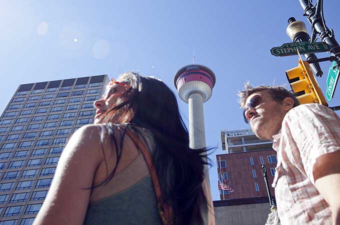 Größer als Edmonton und definitiv eine Reise wert, ist Calgary, Kanadas sonnigste Metropole. Hier findet jedes Jahr im Juni „the Greatest Outdoor Show on Earth“ statt, das Calgary Stampede, ein riesiges Festival mit Paraden und zahlreichen Rodeoveranstaltungen. Empfehlenswert sind auch der Besuch im weltberühmten und sehr schönen Zoo der Stadt sowie der Aufstieg auf den 190 m hohen Calgary Tower.