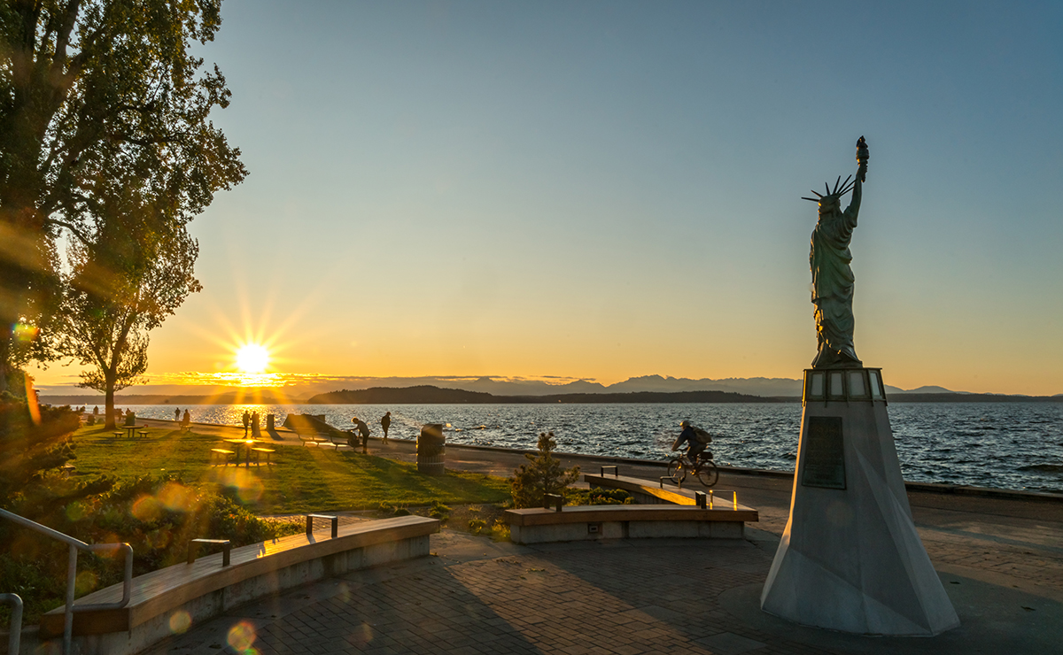 Besuchen Sie auch das Alki Point Lighthouse, die kleine Freiheitsstatue von Seattle, den Luna Park oder den Constallation Park. Abends erwarten Sie hier wunderschöne Sonnenuntergänge. Etwas zurückversetzt finden Sie zudem den Schmitz Preserve Park, einen nahezu unberührten Park mit einem alten Baumbestand, den Sie auf verschiedenen Wanderwegen erkunden können.