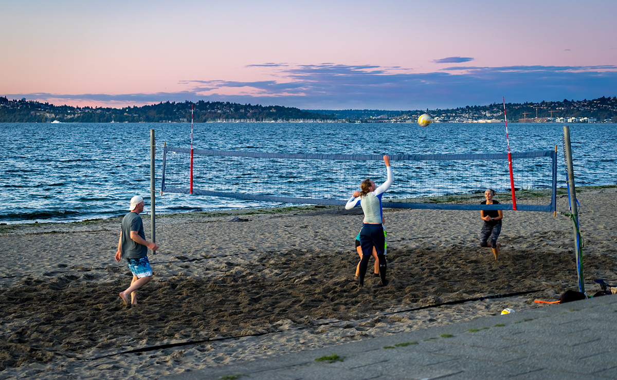 Am Alki Beach Park können Sie spazieren gehen, joggen, Fahrrad- oder Inliner fahren sowie Volleyball spielen. Wenn Sie zwischendurch hungrig sind, laden viele Picknickbereiche und kleine Cafés zum Speisen ein.