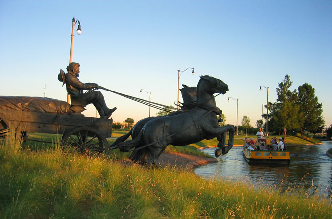 Wer hätte gedacht, dass man mitten in Oklahoma City Boot fahren kann? In Bricktown gleiten Sie mit dem Water Taxi durch Bricktown Canal, vorbei an roten Backsteinfassaden, Restaurants mit Terrassen am Wasser und abendlichem Großstadtflair. Das Viertel pulsiert – tagsüber entspannt, abends lebendig, wenn sich Cafés, Bars und Musiklokale füllen und die Lichter sich im Wasser spiegeln.