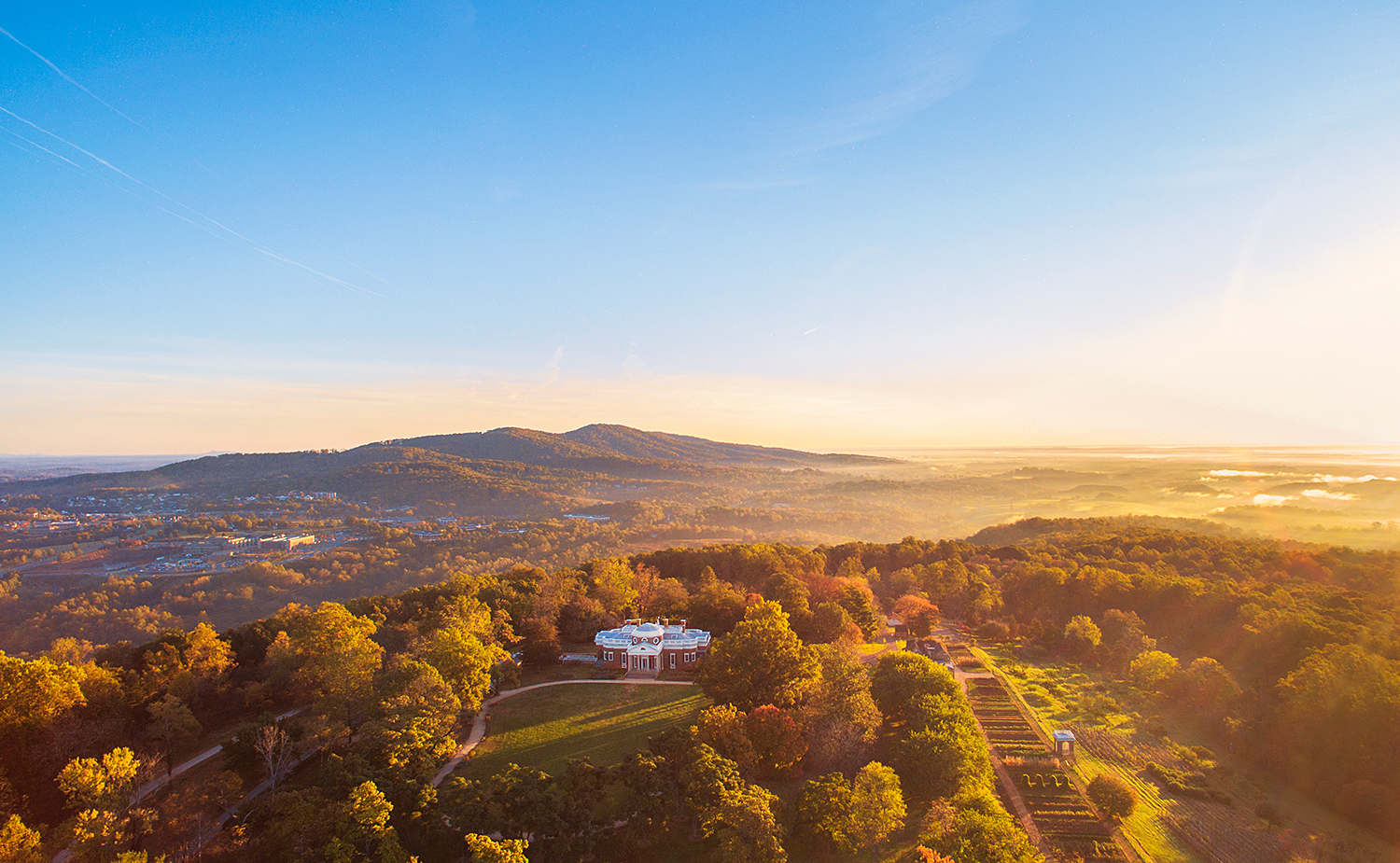 Etwas außerhalb von Charlottesville liegt Monticello, der ehemalige Landsitz von Thomas Jefferson, dem dritten Präsidenten der USA. Auf einer Anhöhe gelegen können Besucher entweder auf eigene Faust oder bei einer geführten Tour das Anwesen erkunden. Jefferson errichtete Monticello ab 1768 im neoklassizistischen Stil auf seiner Plantage, wo er unter anderem Tabak und Weizen anbaute. Nach der Fertigstellung 1809 versuchte Jefferson auf dem Gelände den Weinbau auch westlich des Atlantiks zu kultivieren, in dem er Rebstöcke von seinen Reisen nach Frankreich und dem Rheingau nach Amerika brachte. Er gilt als Pionier des Weinanbaus in den USA und so ist es nicht verwunderlich, dass der US-Bundesstaat Virginia heute insgesamt über 300 Weingüter beherbergt. Monticello zählt zum UNESCO-Welterbe, genauso wie die University of Virginia in Charlottesville – beide Bauten tragen die Handschrift vom Architekten Thomas Jefferson, eine weitere Gabe des ehemaligen US-Präsidenten.