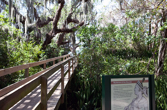 An einer Landzunge in Palma Sola, kurz bevor der Manatee River in die Tempa Bay fließt, erinnert das De Soto National Memorial an die Landung des Spaniers Hernando de Soto im Jahr 1539. Von hier aus brach der Konquistador mit seinen Gefolgsleuten zu seiner letzten Expedition auf, bei der er auf der vergeblichen Suche nach Gold und anderen Reichtümern 1542 nach einer Odyssee von circa 6500 Kilometern am Mississippi an einer Fieberkrankheit starb. Vor dieser Expedition hier zurückgelassene Pferde sind die Urahnen der späteren nordamerikanischen Mustangherden. Die heutige Ausstellung im Visitor Center des De Soto National Memorials erzählt von dem Zusammentreffen der Seefahrer mit dem hier ansässigen Stamm der Timucuan, der erbitterten Widerstand gegen die Besetzung seines Landes leistete. Diese Auflehnung wurden von den Eroberern jedoch brutal niedergeschlagen.