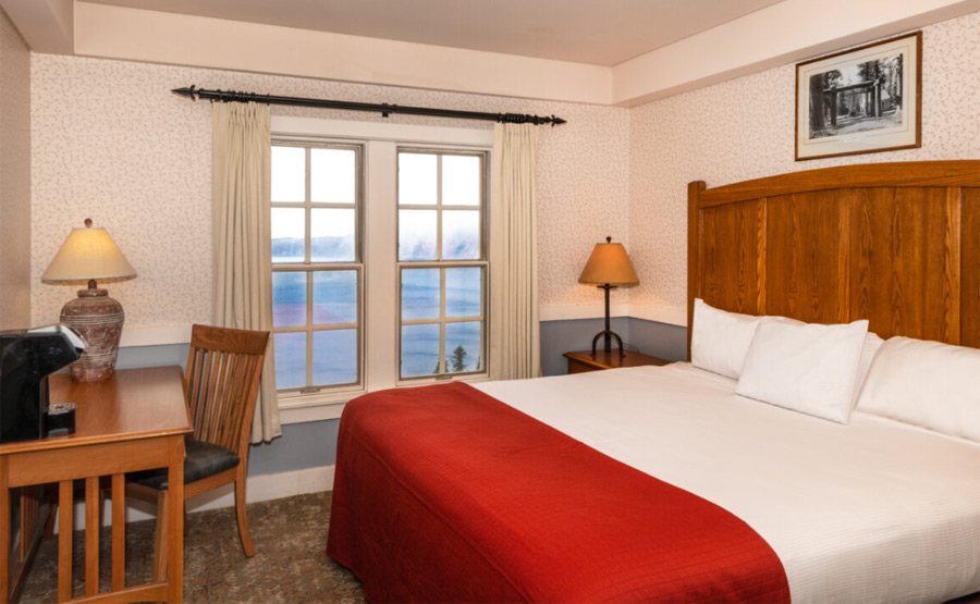 Die Unterkünfte der Crater Lake Lodge sind sauber und gepflegt und verfügen über kostenloses WLAN. Von vielen Zimmern genießen Sie einen fantastischen Blick über den Crater Lake.