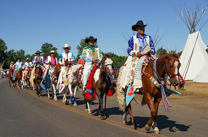 Schon am ersten Abend der Crow Fair zeigen sich die Indianervölker, die in Montana heute in sieben Reservaten leben, in ihren farbenfrohen Kostümen beim Grand-Entry. Verschiedene Tanzchoreographien und andere kulturelle Beiträge, die die indianische Kultur und Geschichte ehren, stehen im Mittelpunkt der Auftaktveranstaltung.