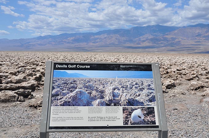 Der Death Valley National Park bietet aber noch viel mehr Naturhighlights, die es wert sind sich anzusehen. Auf dem Devils' Golf Course mit seinem durch Wind und Wetter erodiertem Salzstein, sagt man, kann nur der Teufel selbst Golf spielen. Schöne Aussichtspunkte findet man am Zabriskie Point und an Dante's View. Seit 2013 darf sich der Death Valley National Park auch als Lichtschutzgebiet bezeichnen.
