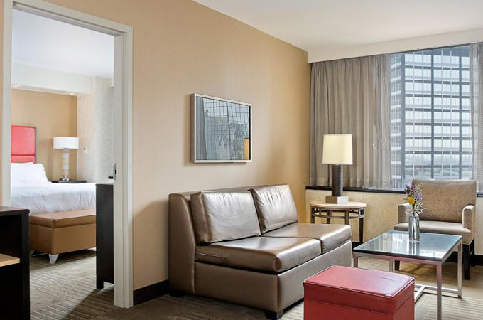 Zu den Annehmlichkeiten des Hotels gehören kostenloses WLAN und ein im Preis inbegriffenes Frühstücksbuffet. Außerdem ist das Hotel über einen spektakulären Skywalk mit dem Brown Palace Hotel verbunden.