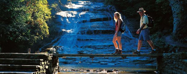 Benannt nach elf unberührten Seen, die sich wie Finger über das Land ausbreiten, bietet diese Region natürliche Schönheit und faszinierende Attraktionen. Flüsse und Bäche verbinden die einzelnen Finger Lakes mit dem Great Lake Ontario und schaffen ein Paradies zum Schwimmen, Angeln und Bootfahren. Wunderschöne State Parks mit üppigen Wäldern, erfrischenden Wasserfällen und wunderschönen Schluchten laden zum Wandern, Radfahren und Campen ein. Die malerischen Weinpfade rund um die Seen führen zu einigen der besten Weingütern des Landes. Und mitten drin: charmante Dörfer und pulsierende Städte, wie Ithaka, Rochester, Syracuse, Seneca Falls, Elmira und Corning. Rennsportfans kommen von nah und fern, um die größten Namen der NASCAR auf dem Watkins Glen International Raceway zu sehen.