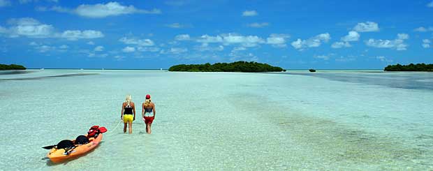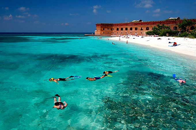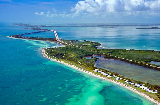 Zwischen dem Golf von Mexiko und dem Atlantik liegt eine der malerischsten Regionen der ganzen USA – die Floriday Keys. Über 203 Kilometer zieht sich eine beeindruckende Kette aus mehr als 200 Koralleninseln vor der Südspitze Floridas durch den Atlantischen Ozean. Auf den Inseln herrscht das ganze Jahr über ein traumhaft warmes Klima und fantastische Strände laden zu allerlei Wasseraktivitäten ein. Die Keys verfügen über einige der besten Tauchspots der Welt, vor Dry Tortugas liegt zum Beispiel das drittgrößte tropische Korallenriff der Welt. Das Wasser ist durch den Golfstrom, der warmes Nass aus der Karibik nach Norden bringt, das ganze Jahr über herrlich warm und Lebensraum für zahlreiche exotische Tierarten.