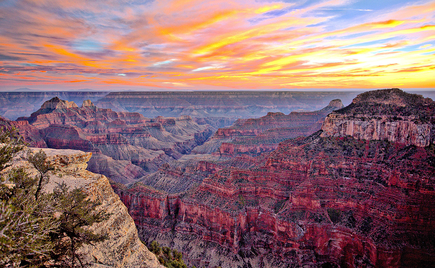 Der Grand Canyon ist die wohl berühmteste Schlucht der Welt. Die überwältigende Größe der tiefroten Steilwände verschlägt vielen Besuchern zunächst die Sprache. An einigen Stellen schauen Sie hinunter auf 1,7 Milliarden Jahre Geschichte, denn so alt ist die unterste Gesteinsschicht des Canyons. Der Grand Canyon ist wahrhaftig ein Ort der Superlative. Sie sollten sich genug Zeit lassen, dieses magische Areal in all seiner Pracht zu erkunden. Dazu haben sie verschiedene Möglichkeiten: Je nach Lust und Kondition können Sie den Grand Canyon erwandern, einen Ritt in den Canyon unternehmen, eine Fahrt bzw. eine Wanderung am Canyonrand machen, mit dem Hubschrauber oder dem Flugzeug über den Canyon fliegen oder im IMAX-Theater (in Tusayan) einen halbstündigen Film über den Canyon sehen. Hier wird Ihnen die Geschichte des Grand Canyons nähergebracht.