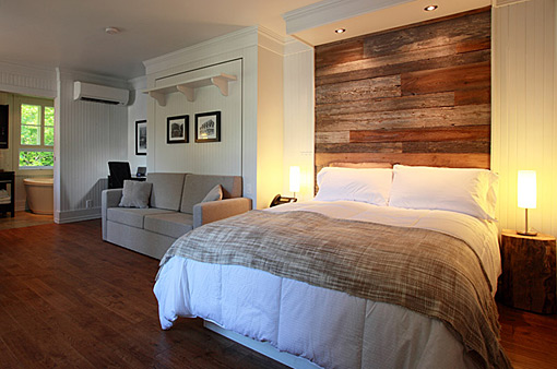 Das 3-Sterne-Hotel Val-Jalbert Historic Village ist kein Hotel im klassischen Sinne. Es liegt etwa 10 Kilometer von der nächstgrößeren Stadt Roberval entfernt und liegt direkt am Lac Saint-Jean. Beim Val-Jalbert Historic Village handelt es sich um ein historisches Dorf, das zeigt, wie die Menschen in den 20er Jahren hier lebten. Viele historische Gebäude sind zu besichtigen und das Wahrzeichen dieses Ortes sind die Ouiatchouan Falls. Diese können Sie sich von der direkt an den Fällen gebauten neuen Glasplattform ansehen. Ein einmaliges Erlebnis, da Sie das mächtige Naturschauspiel aus nächster Nähe beobachten. Im Dorf gibt es viele Shows, Aktivitäten und Attraktionen, die einen Besuch hier sehr kurzweilig machen. Dazu gehören zum Beispiel geführte Walking Touren oder eine Fahrt mit der Bimmelbahn. Ihre Zimmer sind in restaurierten Gebäuden im Dorf. Sie verfügen über eine moderne Ausstattung, jedoch schwingt auch immer ein Hauch der 20er Jahre durch die Räume. Die meisten Zimmer haben ein Double- oder Queen-size Bett und ein weiteres im Schrank verstecktes Bett derselben Größe. In den 16 Gästezimmern gibt es ein vollausgestattetes Badezimmer, einen Plasma-Fernseher, kostenloses WLAN, eine Mikrowelle, einen kleinen Kühlschrank, eine Kaffeemaschine und eine Klimaanlage.