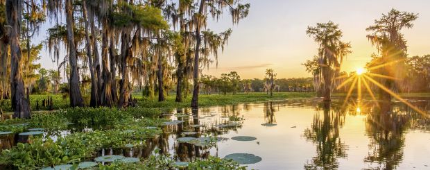 Louisiana hat eine einzigartige Natur mit großen Flussdeltas und stillen Sumpflandschaften voller Magie. Östlich von Lafayette im Atchafalaya Basin schlängelt sich der Bayou Teche kilometerlang durch das Mündungsdelta des Mississippi. An den langsam fließenden Gewässern wachsen moosbedeckte Tupelo- und Zypressenbäume, üppigen Eichen und Magnolien. Ganz in der Nähe, auf Avery Island, liegt die weltweit einzige Tabasco-Fabrik.