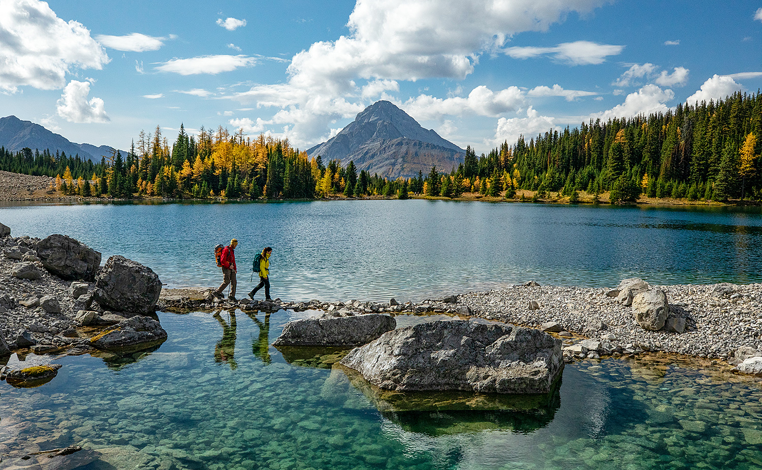Während die Prärien in warmen Gold- und Rottönen leuchten, beginnt in den Rockies der erste Schneefall und legt sich sanft auf die Gipfel. Ein besonderes Highlight sind die goldenen Lärchen, die sich von Mitte September bis Anfang Oktober in flammendes Gelb verfärben – ein Anblick, der auf Wanderungen durch das Larch Valley oder über den Pocaterra Ridge besonders eindrucksvoll ist.