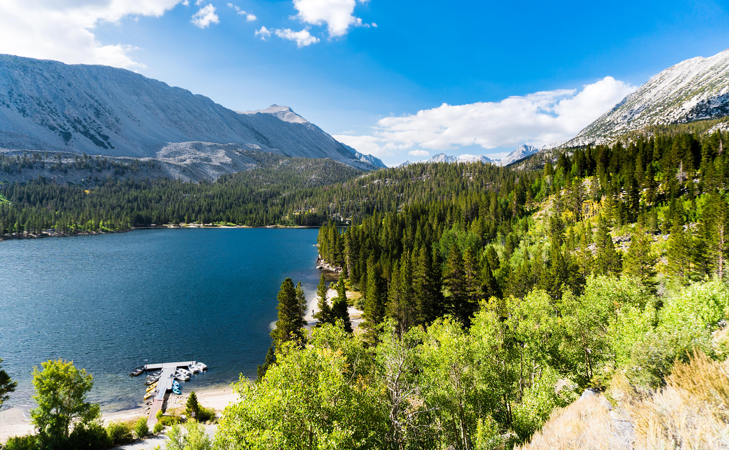 In Mammoth Lakes finden Sie atemberaubende Wanderwege durch die Sierra Nevada, darunter auch den Fernwanderweg John Muir Trail. Verpassen dürfen Sie auf keinen Fall einen Abstecher zum Devils Postpole National Monument, einem Naturpark unmittelbar außerhalb des Ortes und gut mit einem Shuttlebus erreichbar. Dort finden Sie beeindruckende bis zu 20 m hohe Basaltsäulen an einem der steilen Berghänge. Wenn Sie dem Wanderweg entlang des San Joaquin Rivers folgen, können Sie die 31 m hohen Rainbow Falls Wasserfälle besuchen. Mammoth Lakes ist auch für die vielen kleinen Seen bekannt. Sie können zum Beispiel am Lake Mary ein Boot leihen oder einfach nur die faszinierende Bergkulisse genießen, während Sie am See relaxen.