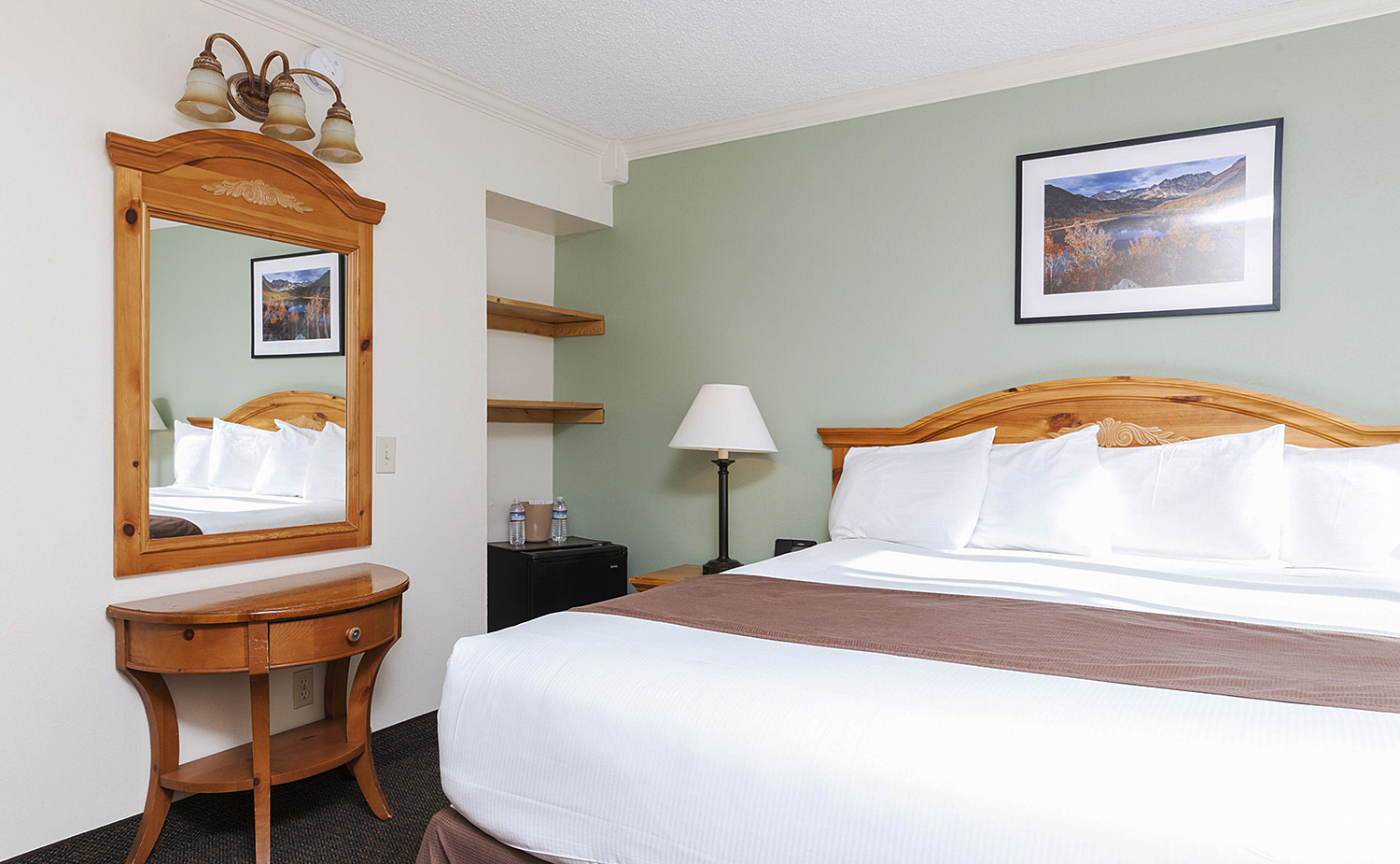 Die Alpenhof Lodge, ein 2,5 Sterne Hotel mit 58 Zimmern, liegt im Zentrum von Mammoth Lakes. Die Village-Gondel befindet sich direkt an der Unterkunft, die zum großen Mammoth Mountain führt, der mit zahlreichen Wanderwegen und einer großartigen Aussicht begeistert. Außerdem biete Mammoth Lakes eine Vielzahl von Restaurants, Bars und Boutiquen sowie einen Golfplatz, der sich nur wenige Gehminuten entfernt befindet.