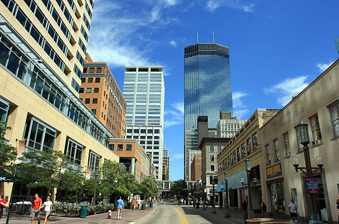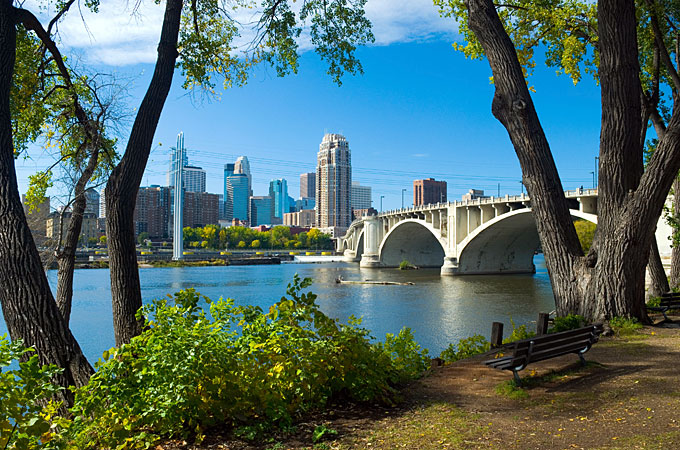Minnesota ist nach Alaska der nördlichste Staat und der westlichste Staat der USA, der direkt an die großen Seen grenzt. Rund zwei Drittel der Bevölkerung leben in und um die Zwillingsstädte Minneapolis und St. Paul. Diese „Twin Cities“ sind das kulturelle und wirtschaftliche Zentrum von Minnesota. Dutzende Parks, Wege und Grünflächen durchziehen die beiden Städte und die umliegende Metropolregion. Darunter befindet sich auch die Mississippi National Recreation Area, die über mehr als 72 Meilen dem mächtigsten Fluss Nordamerikas folgt. Die „Twin Cities“ halten die verschiedensten Ausflugsmöglichkeiten bereit – von Theatern über lokale Brauereien bis hin zur Mall of America, Amerikas größtem Einkaufszentrum.