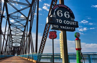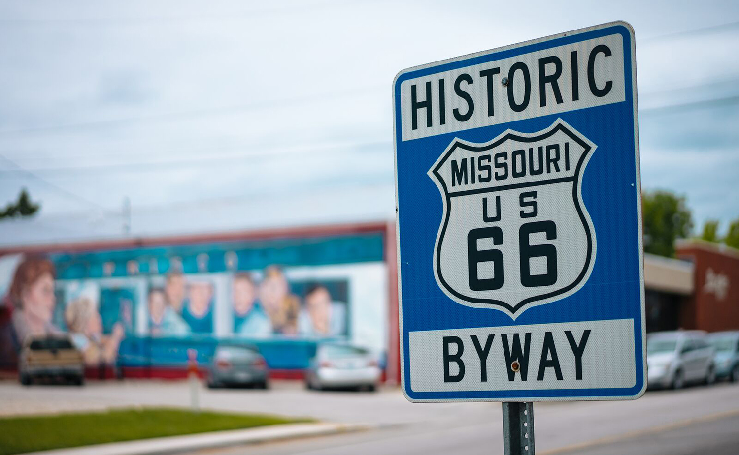 Die legendäre Route 66 führt von St. Louis an der Grenze zu Illinois in Richtung Südwesten durch Missouri über sanfte Hügel und durch Täler, vorbei an charmanten Motels, originellen Geschäften, Retro-Dinern und farbenfrohen Wandgemälden.