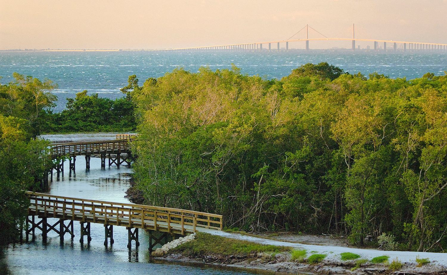 Ein weiteres Highlight unter den Naturparks ist das Emerson Point Preserve. Dieses Schutzgebiet liegt auf der Halbinsel zwischen dem Manatee River und der Terra Ceia Bay. Es umfasst Kiefernwälder, Feuchtgebiete und Strände. Hier können Sie Delfine, Seekühe, Reiher und andere Tiere sehen und die Geschichte und Kultur der Region erkunden, denn hier befindet sich die historische Portavant Temple Mound, die älteste bekannte indianische Siedlung an der Golfküste Floridas. Zudem gewährt der Park einen malerischen Blick auf die Skyline von St. Petersburg und auf das Wasser. Dieser idyllische Ort lädt zu einem Picknick ein und Sie können hier auch angeln.