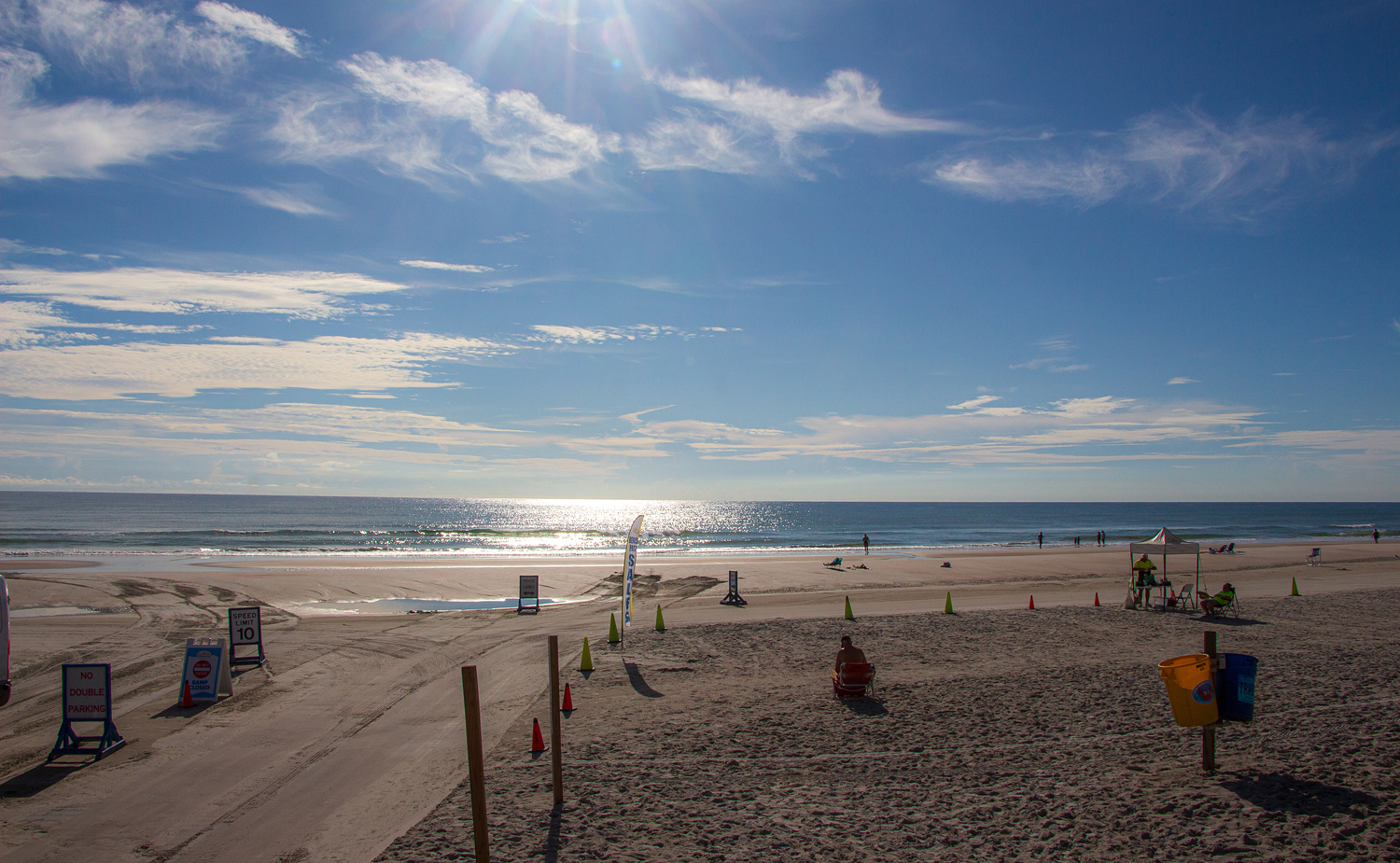 Wenn Sie es quirlig und lebendig mögen, dann wählen Sie den Strandeingang der Flagler Avenue. Hier sind Sie im Zentrum des Geschehens und rundum bestens versorgt, ob Sie den Strand-Fitnesstrainer gebucht haben oder im Breakers Ocean Front Restaurant & Bar leckere Hamburger und ein kühles Getränk genießen möchten. Gleich rechts des Eingangs finden Sie einen Pavillon, unter dem Sie in der Mittagszeit picknicken können, einen Turm des Rettungsteams und die Strandduschen.