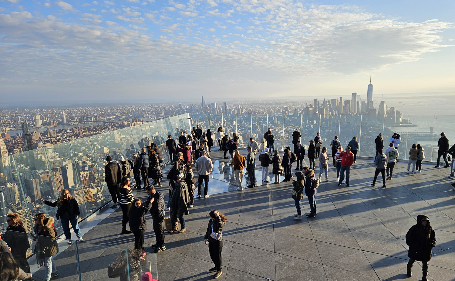 Das „The Edge“ ist die höchste Aussichtsplattform der westlichen Hemisphäre und von einzigartigem Design. Frei hängend vermittelt Sie Ihnen das Gefühl, bei einem Panoramaausblick zwischen Himmel und Erde zu schweben. Durch den Glasfußboden vom Edge können Sie 100 Stockwerke in die Tiefe blicken oder Sie können sich mit einem leckeren Drink an die schrägen Glaswände lehnen und den Blick über die Stadt genießen.