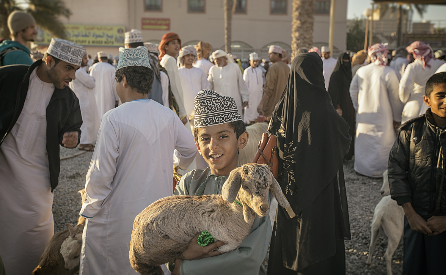Besonders eindrucksvoll zeigt sich der Souq am Freitagmorgen, wenn sich Viehhändler aus der ganzen Region zum berühmten Freitagsmarkt versammeln. In einem eigenen Bereich werden Ziegen, Schafe und Rinder im Kreis an den Interessenten vorbeigeführt – ein lebendiges Schauspiel aus Stimmen, Staub und Bewegung. Hier erleben Sie das ländliche Oman ganz unverstellt. Männer in weißen Dishdasha, Frauen in farbenfrohen Gewändern, ernste Verhandlungen, kurze Scherze und neugierige Kinderblicke.