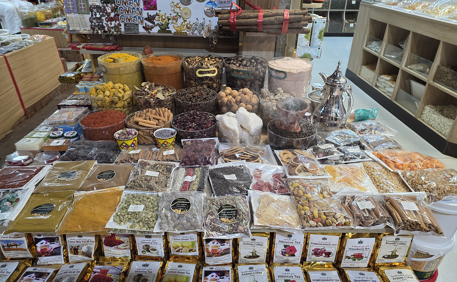 Ein eigener Bereich des Marktes gehört den Frauen aus Nizwa und den umliegenden Dörfern. Hier werden bunte Tücher, Stoffe, Parfümöle, Kosmetikartikel, Haushaltswaren, Süßigkeiten und frische Produkte angeboten. Die Atmosphäre ist hier etwas ruhiger, aber nicht minder lebendig. Es wird verhandelt, gelacht und getratscht, wobei gleichzeitig viel Rücksicht und Diskretion spürbar sind. Mit einem freundlichen Lächeln und respektvollem Abstand lassen sich hier wunderbare Alltagsmomente beobachten.
