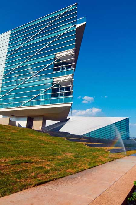 Ein ganz besonderer Ort ist auch das Oklahoma City National Memorial & Museum. Das Memorial erinnert an eine der traurigsten Stunden OKCs, als am 19. April 1955 eine Bombe das Alfred P. Murrah Federal Building fast vollständig zerstörte. Abends, wenn es illuminiert ist, kommt die gelungene Architektur besonders zur Geltung.