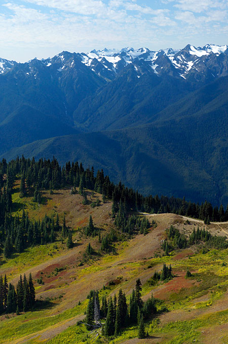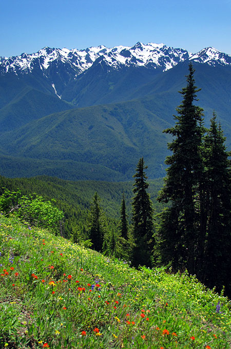 Von Port Angeles aus können Sie auf einer 27 Kilometer langen Bergstraße die Hurricane Ridge erreichen. An klaren Tagen sehen Sie von der Aussichtsplattform des Hurricane Ridge Visitor Centers aus 1.600 m Höhe bis weit ins Innere des Nationalparks mit seinen tiefen, oftmals nebelbedeckten Tälern, den schneebedeckten Gletschern und tiefgrünen Wäldern. In nördlicher Richtung erspähen Sie bei guter Sicht Vancouver Island in Kanada. (Bis Ende 2024 können Sie den Blick nur vom Parkplatz des Visitor Centers aus genießen, denn das Gebäude wird derzeit neu gebaut.)