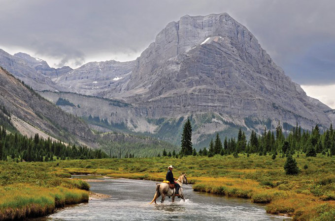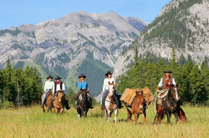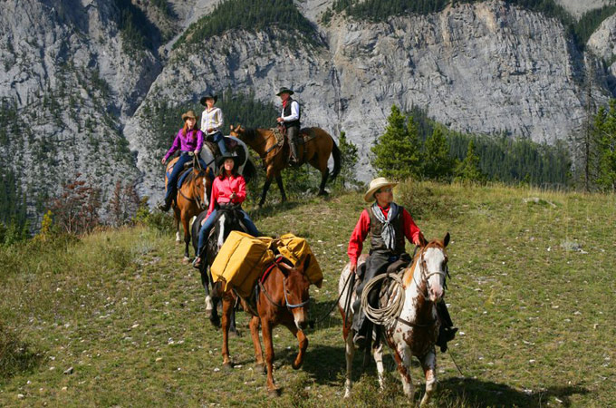 Seit über 50 Jahren bietet Banff Trail Riders einmalige Pack Trips in die herrliche Berglandschaft der kanadischen Rocky Mountains an. Von Banff aus starten Sie in Ihr Western-Abenteuer in den Bergen des Nationalparks. Banff erreichen Sie in etwas mehr als einer Stunde bequem vom internationalen Flughafen in Calgary. Banff Trail Riders bietet eine Auswahl zwischen Übernacht-Pack Trips von zwei bis fünf Nächten an. Die Pack Trips mit Übernachtung sind für fast alle Reitlevel geeignet - bis auf absolute Neulinge im Reiten. Eines der bestens ausgebildeten Pferde wird für die Zeit des Pack Trips extra für Sie ausgewählt und zu Ihrem festen Begleiter. Übernachtet wird stilecht in stabilen Steinwandzelten, die erhöht auf einer Holzplattform aufgestellt sind. Was zunächst rustikal klingt, ist es gar nicht: Im Camp gibt es heißes Wasser und Duschmöglichkeiten und der hauseigene Camp-Koch verwöhnt Sie im geräumigen Küchenzelt mit allerlei Köstlichkeiten - eine tolle Mischung aus Outdoor-Erfahrung und rustikalem Komfort. Falls Sie es etwas komfortabler wünschen, werden die Pack Trips auch mit Übernachtungen in bequemen Lodges angeboten.