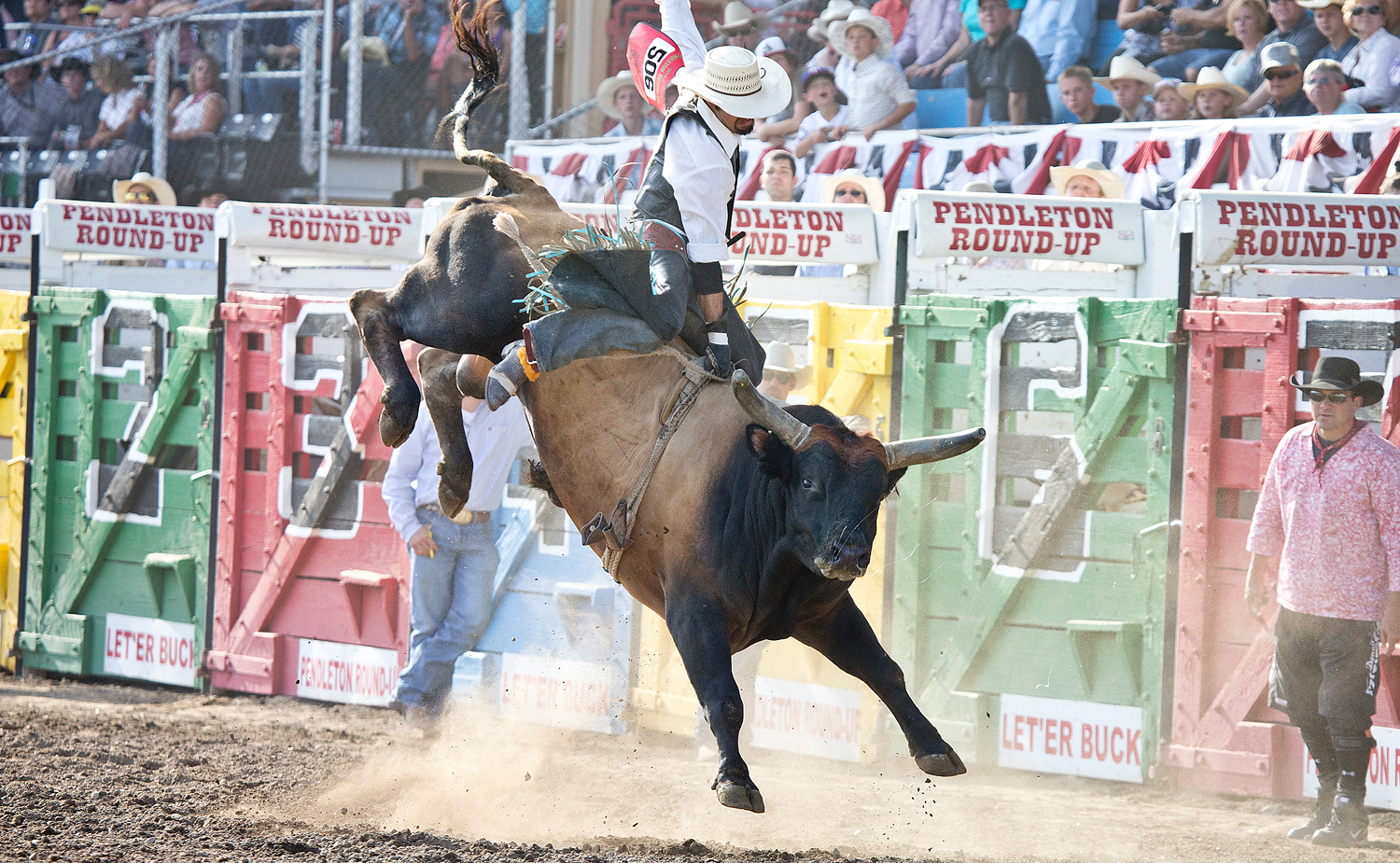 Jedes Jahr im September findet in Pendleton eines der größten und ältesten Rodeos der Welt statt, das Pendleton Round-up Rodeo. Während dieser Zeit ist die Stadt im Ausnahmezustand: Die Hauptstraße wird zur Fußgängerzone, Live-Musik schallt durch die Straßen und kostümierte Rodeo-Fans prägen das Straßenbild. Tägliche Festzüge, Paraden, Pow-Wows, Schönheitswettbewerbe, und natürlich das eigentliche Highlight des Round-Ups - das Rodeo: Die hölzerne Tür der kleinen Box öffnet sich und die waghalsigen Reiter erscheinen unter frenetischem Applaus im Stadion. Bis zu 8 Sekunden halten sie sich auf dem Rücken der sich aufbäumenden Tiere, ein wahrlich dramatischer Auftritt! Seit der ersten Austagung des Round-ups beteiligen sich in Pendleton die Native Indians der Region am Rodeo. Sie präsentieren im Anschluss an die Reitevents eine bunte und faszinierende Show.