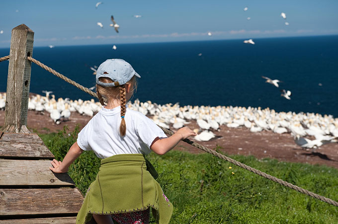 Eine andere Hauptattraktion ist die Île Bonaventure mit der größten Basstölpelkolonie Amerikas. Von Anfang Juni bis zum kanadischen Feiertag Thanksgiving Mitte Oktober ist dieser Nationalpark geöffnet und Sie können per Schiff von Percé dorthin gelangen. Auf der Insel werden Sie dann von einem Ranger empfangen und geführt. 4 Wanderwege laden zum Erkunden der Insel ein. Außer Robben und vielen Vogelarten, die hier heimisch sind, lässt sich jeden Sommer eine riesige Basstölpelkolonie auf der Île Bonaventure nieder. Die rund 60.000 nistenden Vögel bieten ihren Besuchern ein unvergessliches Naturschauspiel.
