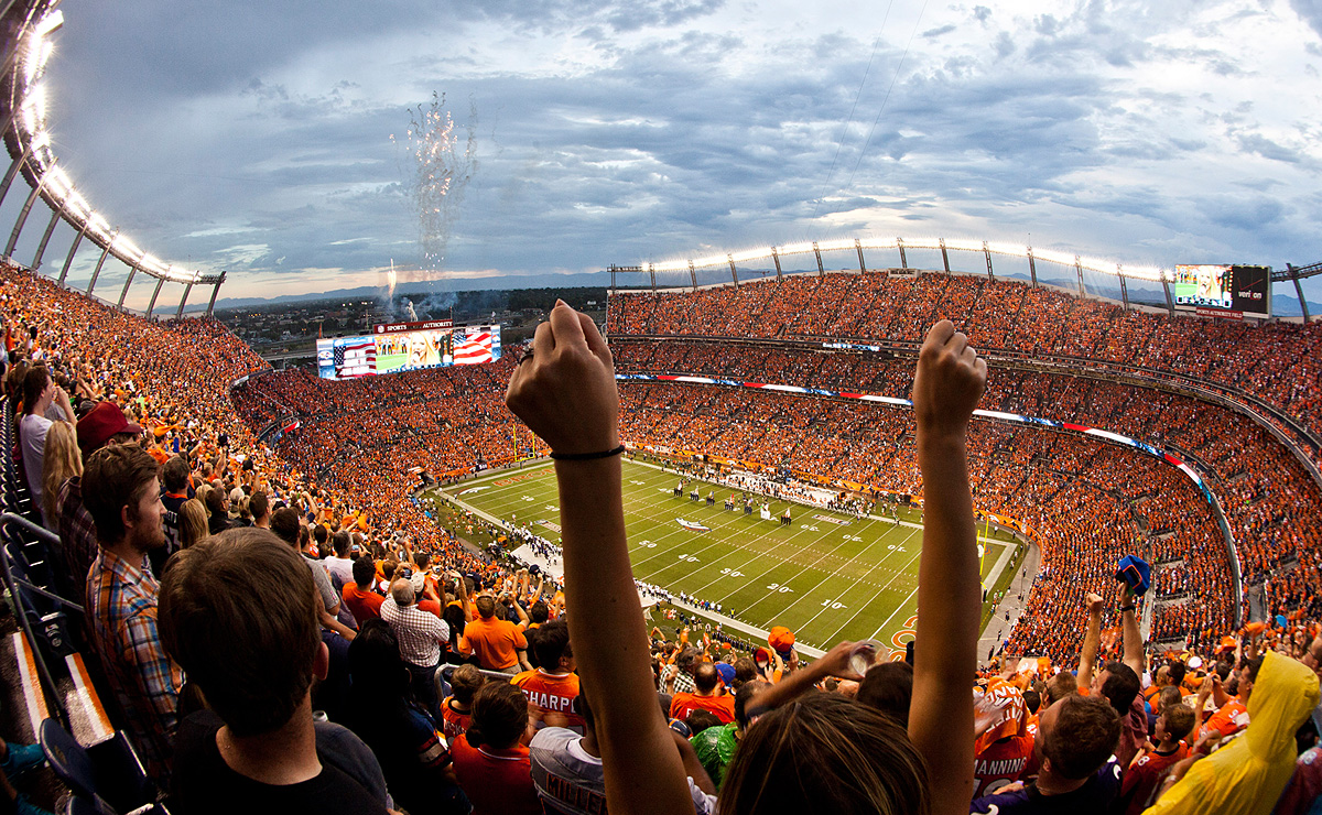 Denver Broncos: Das Zuhause der Denver Broncos ist das riesige Empower Field at Mile High Stadion. John Albert Elway ist einer der bekanntesten ehemaligen Quaterbacks der Broncos. Er spielte 16 Jahre für den Verein und führte sie zu 2 aufeinanderfolgenden Siegen im Super Bowl.