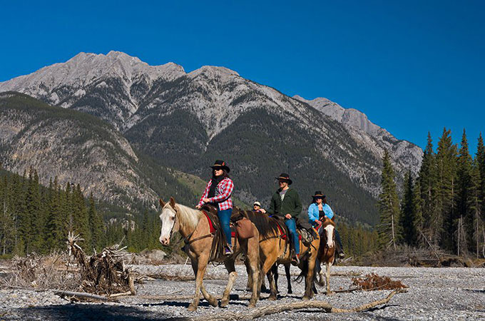 Während der Pack Trips kommen Sie in den Genuss faszinierender Ausblicke, die den meisten Besuchern des Nationalparks verwehrt bleiben. Sie reiten auf historischen Pfaden, die sich durch die schroffen Felsen der Gebirge in einer der schönsten Regionen ganz Kanadas winden. Die Luft ist kühl und frisch und in den Bergen herrscht eine fast schon unheimliche Ruhe. Entlang des vom Gletscher gespeisten Bow Rivers haben Sie die vielleicht besten Chancen in der Region, Elche, Hirsche oder Rehe zu sehen, die häufig an den Ufern herumstreifen. Hin und wieder lassen sich auch Bären beobachten. Spätestens zum Sonnenuntergang kehren Sie zur Lodge zurück, und lassen den Abend gemeinsam mit Ihren Mitreitern am Lagerfeuer bei einem frisch zubereiteten Dinner ausklingen.