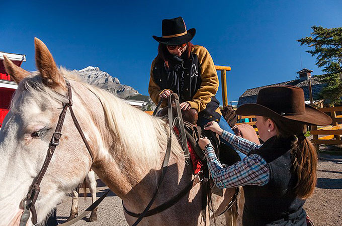 Seit über 50 Jahren bietet Banff Trail Riders einmalige Pack Trips in die herrliche Berglandschaft der kanadischen Rocky Mountains an. Starten Sie von Banff aus in Ihr Western-Abenteuer in den Bergen des Nationalparks. Banff erreichen Sie in etwas mehr als einer Stunde bequem vom internationalen Flughafen in Calgary. Banff Trail Riders bietet eine Auswahl zwischen Übernacht-Pack Trips von zwei bis fünf Nächten an. Die Pack Trips mit Übernachtung sind für fast alle Reitlevel geeignet - bis auf absolute Neulinge im Reiten. Für die Zeit des Pack Trips wird eines der bestens ausgebildeten Pferde extra für Sie ausgewählt und zu Ihrem festen Begleiter. Da Banff Trail Riders zwei Lodges, die Halfway Lodge und die Sundance Lodge, mitten in der unberührten Natur des Banff National Parks betreibt, müssen Sie nach einem kräftezerrenden Tag im Sattel nicht auf Ihr komfortables Bett verzichten - eine optimale Mischung aus Outdoor-Erfahrung und rustikalem Komfort. Sollte Ihnen das zu seicht erscheint, werden auch Pack Trips mit Übernachtungen in rustikaleren Steilwandzelten angeboten.