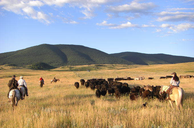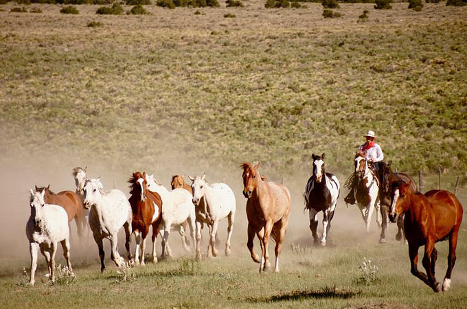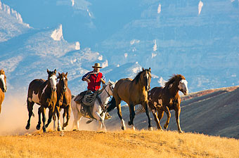 Wenn Sie an einem Cattle Drive teilnehmen, werden Sie die faszinierende Atmosphäre, die Ihnen bestimmt aus zahlreichen Western-Filmen bekannt ist, hautnah miterleben. Im Frühjahr helfen Sie, die Rinderherde von den Winterweiden im Tal zu den höher gelegenen Sommerweiden und im Herbst wieder zurück zur Ranch zu treiben. Die Größe der Herden variiert zwischen 100 und 1.500 Tieren. Wenn Sie sich an einem Cattle Drive beteiligen, sitzen Sie fünf bis sechs Stunden pro Tag im Sattel und übernachten in Zelten oder einfach unter dem Sternenhimmel. Bei einigen Drives können Sie als „Greenhorn“ teilnehmen, bei anderen sollten Sie schon ein erfahrener Reiter sein. Ein Cattle Drive wird garantiert zu einem der schönsten Abenteuer Ihres Lebens!