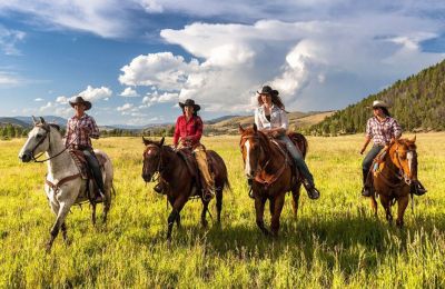 Auf vielen Guest Ranches steht neben dem Reitprogramm ein umfangreiches Freizeitangebot mit Kanufahren, Mountainbiking oder Fliegenfischen im Mittelpunkt der Outdoor-Aktivitäten. Die täglichen Ausritte von zwei bis sechs Stunden werden auf einigen Guest Ranches durch Ganztagesritte mit Übernachtung in Zelten ergänzt. Da die Einteilung der Reitgruppen aufgrund der Reiterfahrung erfolgt, werden sowohl erfahrene Reiter als auch Anfänger viel Spaß auf den Ausritten haben. Reitunterricht strikt in einer Arena ist eine Seltenheit, denn wer will schon wie zu Hause seine Runden drehen, wenn die Wildnis lockt? Hier, im Westen, wird das Motto „Learning by doing“ großgeschrieben. Zwar werden Sie auf Guest Ranches nur sehr selten größere Rinderherden finden, oft werden aber kleinere Rinderherden gehalten. So ist es möglich, mit den Gästen verschiedene Reiterspiele wie z. B. Teampenning üben zu können.