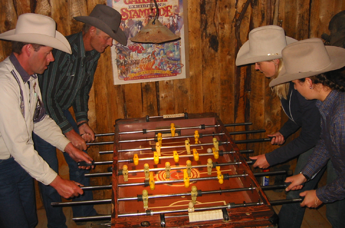 Egal wie viel zu tun ist, wird immer auch eine ausgedehnte Mittagspause eingelegt. Es gibt handgebrühten Kaffee, Bohnen sowie über dem Feuer (je nach Trockenheit des Geländes) geröstete Würstchen und anschließend zur Erholung ein Nickerchen in der Sonne. Am Abend trifft man sich dann zu einem kühlen Bier im gemütlichen Saloon der La Reata Ranch, wo ein Billardtisch, Tischkicker und eine Dartscheibe zur Verfügung stehen.