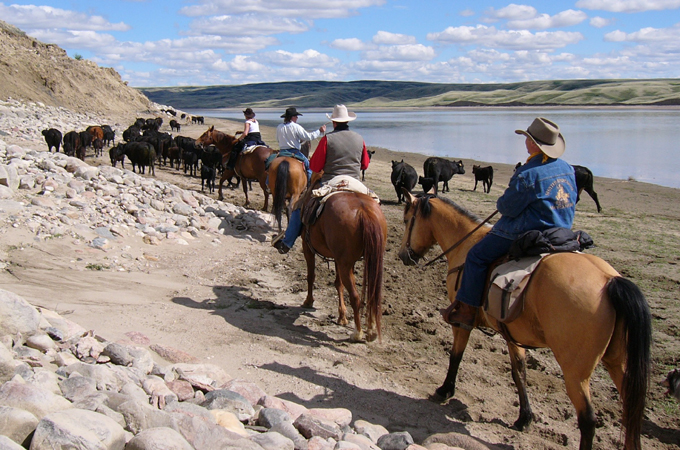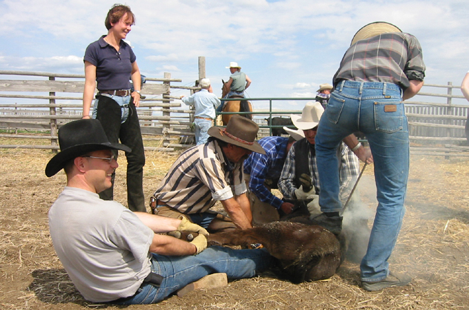 Wie auf jeder Ranch, steht auch hier in einigen Monaten des Jahres (meist Frühjahr und Herbst) die Arbeit mit den Rindern mehr im Vordergrund, doch auch in dieser Zeit ist die Arbeit mit Rindern von der Witterung abhängig. Die erlebnisreichen Tage auf der La Reata Ranch beginnen mit einem kräftigen Frühstück. Dann geht es auf dem Rücken Ihres Pferdes hinaus auf die Weiden der La Reata Ranch. An manchen Tagen (siehe oben) müssen die Tiere kontrolliert, behandelt oder umgetrieben werden und Sie sind herzlich eingeladen, den Cowboys dabei zur Seite zu stehen.