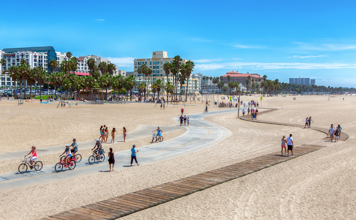 Mit mehr als 280 Sonnentagen und einer Stadtfläche von 21 Quadratkilometern, die man bestens mit dem Fahrrad entdecken kann, ist Santa Monica der perfekte Ausgangspunkt für die Erkundung des Großraums Los Angeles. Von Michelin-ausgezeichneten Restaurants und Wellness-Erlebnissen bis hin zu Designer-Shops, Boutique-Hotels und einer blühenden Kunstszene - Santa Monica lädt Besucher dazu ein, das Beste des SoCal-Lifestyles zu genießen. Besuchen Sie eines unserer 55 Museen und Kunstgalerien oder werden Sie am 5,6 km langen Strand aktiv: Ob Yoga, Radfahren, Rollerbladen, Surfen oder auch Volleyball die Auswahl ist riesig.