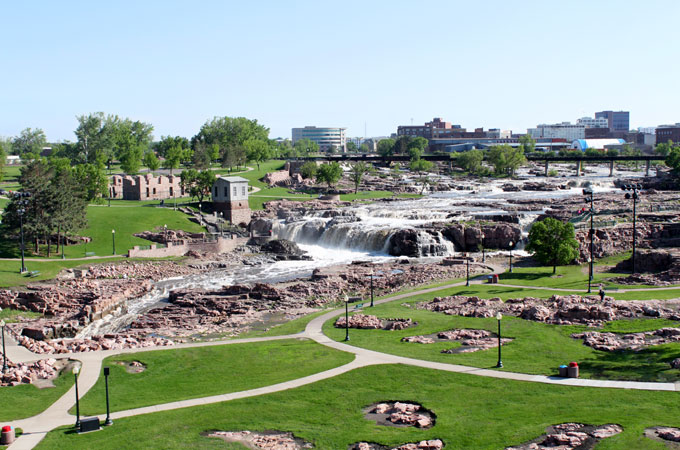 Sioux Falls im Südosten von South Dakota ist die größte Stadt des Bundesstaates. Die Hauptattraktion der 160.000 Einwohner Stadt sind sicherlich die namensgebenden Wasserfälle des Big Sioux River. Seit der Gründung der Stadt im Jahr 1856 sind sie sowohl für die ansässige Industrie als auch zu Erholungszwecken von großer Bedeutung. In dem faszinierend gestalteten Falls Park sehen Sie deshalb nicht nur die beeindruckenden Wasserfälle, sondern auch einige der ersten Gebäude von Sioux Falls.