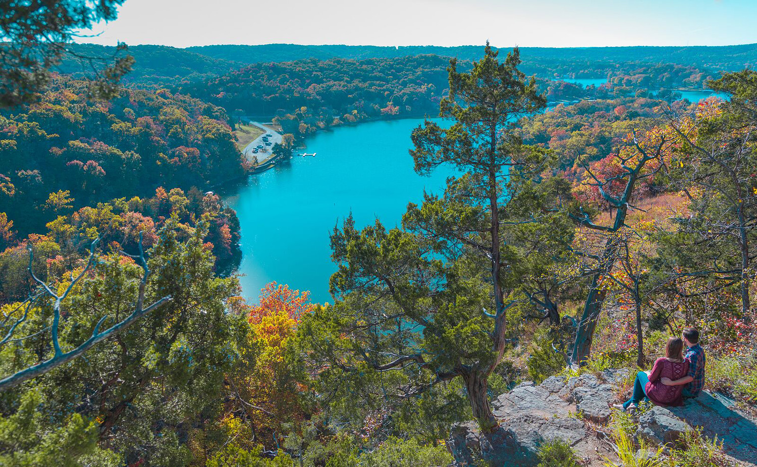Der Ha Ha Tonka State Park mit seiner faszinierenden Geschichte und seinen herausragenden geologischen Merkmalen ist ein State Park, den Sie nicht verpassen sollten. Er ist ein geologisches Wunderland mit Dolinen, Höhlen, einer riesigen natürlichen Brücke, steilen Klippen und der zwölftgrößten Quelle in Missouri. Über diesen Naturwundern thront die Ruine eines Schlosses aus der Jahrhundertwende. Der Ausblicke von dort auf Lake of the Ozarks und die Ha Ha Tonka-Quelle ist fantastisch.