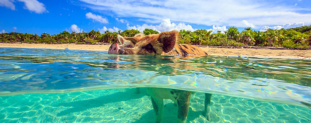 Kaum ein Ort steht so sehr für die Exumas wie Pig Beach auf Big Major Cay. Hier begegnen Ihnen halbwilde Schweine, die mit verblüffender Eleganz durchs Wasser paddeln – und dabei die Herzen der Besuchenden im Sturm erobern. Von Staniel Cay aus sind es nur wenige Bootsminuten zu dieser berühmten Schweine-Attraktion.