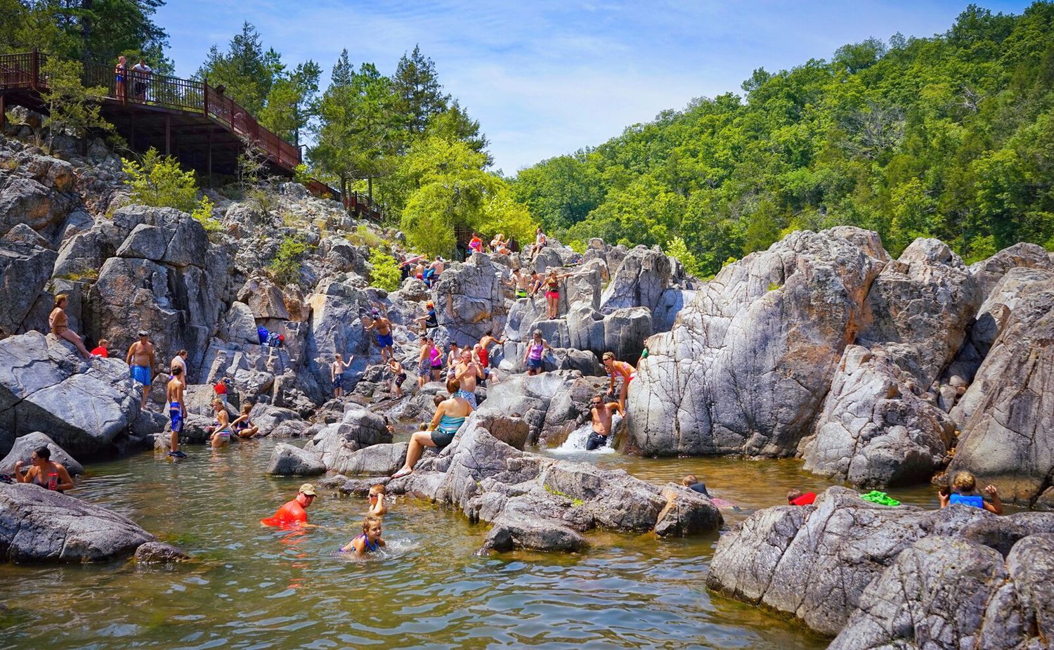 Das Ozark Trail System besteht aus mehr als 700 Kilometer an Wegen durch Wälder, vorbei an Quellen, kristallklaren Bächen, Einfriedungen und Wasserfällen, Steilküsten voller Höhlen und durch echte Wildnisgebiete im Osten von Missouri. Es ist einer der vielfältigsten Orte auf dem Planeten und die Heimat von Hirschen, Truthähnen, Rotluchsen, Bären, Singvögeln und Weißkopfseeadlern. Der Ozark Trail verbindet zwei der berühmtesten Naturwunder von Missouri: den Taum Sauk Mountain und Johnson’s Shut-Ins. Der Taum Sauk Mountain ist der höchste natürliche Punkt Missouris. Der Park beherbergt die Mina Sauk Falls, den höchsten Wasserfall des Staates, der allerdings nur bei Regenwetter sehenswert ist. Johnson’s Shut-Ins State Park ist ein natürlicher Wasserpark, in dem Besucher in den Rinnen und Wasserbecken entlang des Black Rivers spielen können.