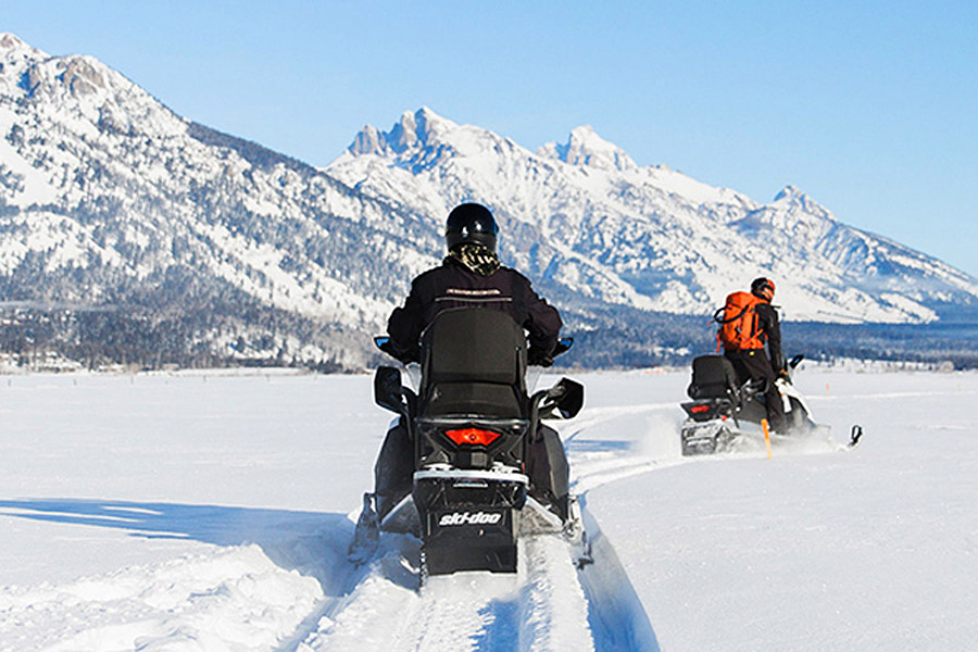 Dies Hochplateau gilt als Mekka der Snowmobil-Enthusiasten. Sie werden zwischen 7:30 Uhr und 8:00 Uhr von Ihrem Hotel abgeholt. Auf dieser Tour fahren Sie auf und neben der Straße, für den puren Schneemobilspaß. Sie können sich ganz ungestört im Tiefschnee austoben, bei der Fahrt durch bewaldete Gebiete und weite Wiesen. Hierfür stehen Ihnen Ski Doo Snowmobile zur Verfügung und wenn Sie möchten, können Sie (gegen einen Aufpreis) auf eine Powder-Maschine upgraden. Erleben Sie grandiose Ausblicke über die Teton Mountains und die angrenzenden Canyons.