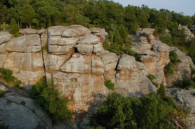 Im ansonsten recht flachen Ackerland des Südens bildet der hügelige Shawnee National Forrest eine Ausnahme. Hier gibt es zahlreiche State Parks, die zum Verweilen einladen. Der bekannteste ist der Giants City State Park mit spektakulären Wäldern und Sandsteinwänden, die zum Wandern, Klettern und Abseilen einladen.