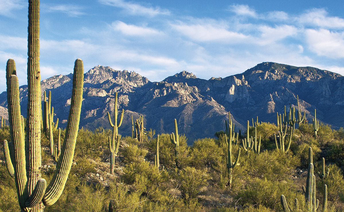Nicht nur die Sterne über Tucson strahlen so hell und hemmungslos wie über keiner anderen Stadt mit einer halben Million Einwohnern in den USA – auch die Sonne präsentiert sich hier mitten in der Sonora-Wüste im tiefsten Süden Arizonas regelmäßig in Hochform. Das malerische Tucson, dessen indianischer Name „Chuk Son“ so viel wie „am Fuße des schwarzen Berges“ bedeutet, liegt nicht nur am „schwarzen Berg“, dem Sentinel Peak, sondern wird in alle Himmelsrichtungen von fünf gewaltigen Bergketten eingerahmt. In dieser einmaligen Szenerie finden Sie mit Tucson eine vielfältige, liberale Stadt, in der der Traum der grenzenlosen Freiheit des Wilden Westen nach wie vor lebendig scheint.