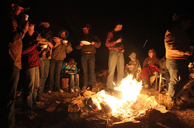Nach einem aufregenden Tag auf dem Pferderücken können in geselliger Runde das Abendessen im Cowboy-Stil genießen und am Lagerfeuer relaxen.
