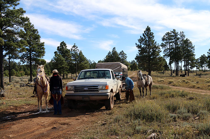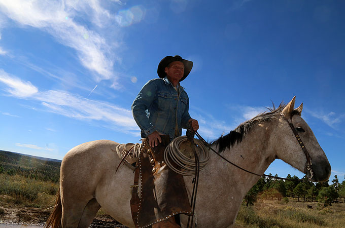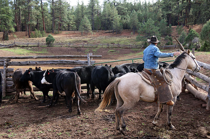 Auf ausgedehnten Ausritten können Sie das sehr abwechslungsreiche Terrain dieser riesigen Ranch erkunden: von dichten Kiefernwäldern über weite Prärien bis hin zu den Ausläufern des Grand Canyon. Selbstverständlich wir dabei immer wieder nach den Rindern der Ranch Ausschau gehalten.