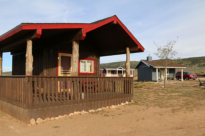 Auf der Grand Canyon Ranch wohnen Sie in einer der vier gemütlichen Cabins, die sich ein Badehaus teilen.