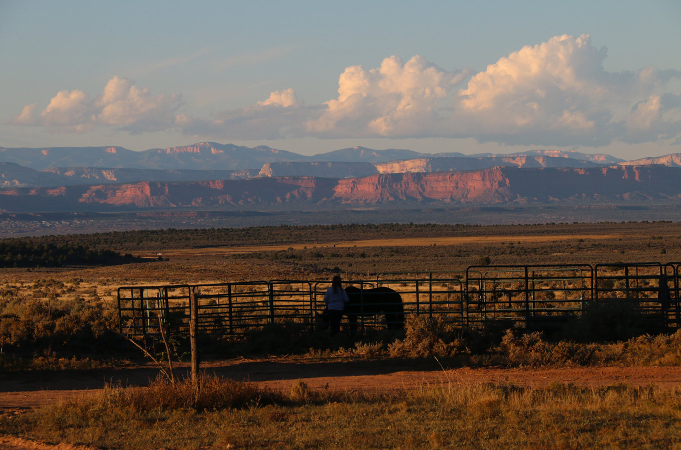 Vom Headquater der Ranch aus haben Sie einen grandiosen Blick auf das Grand Staircase-Escalente National Monument und die Berge vom Bryce Canyon N. P. Insgesamt fünf Nationalparks liegen im Umkreis von 120 Kilometern um die Ranch. Die bewirtschafte eine Fläche der Ranch umfasst rund 1.350 km² - das ist etwa die Hälfte des Saarlands!